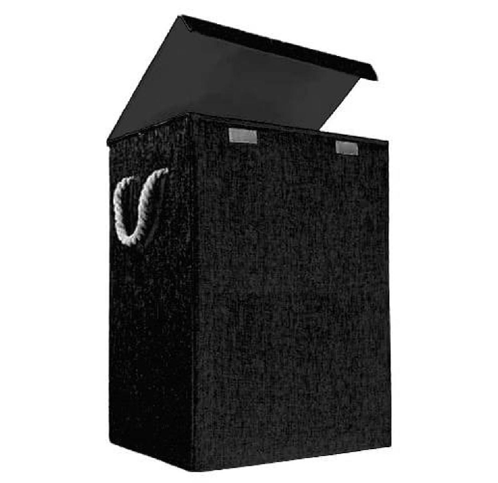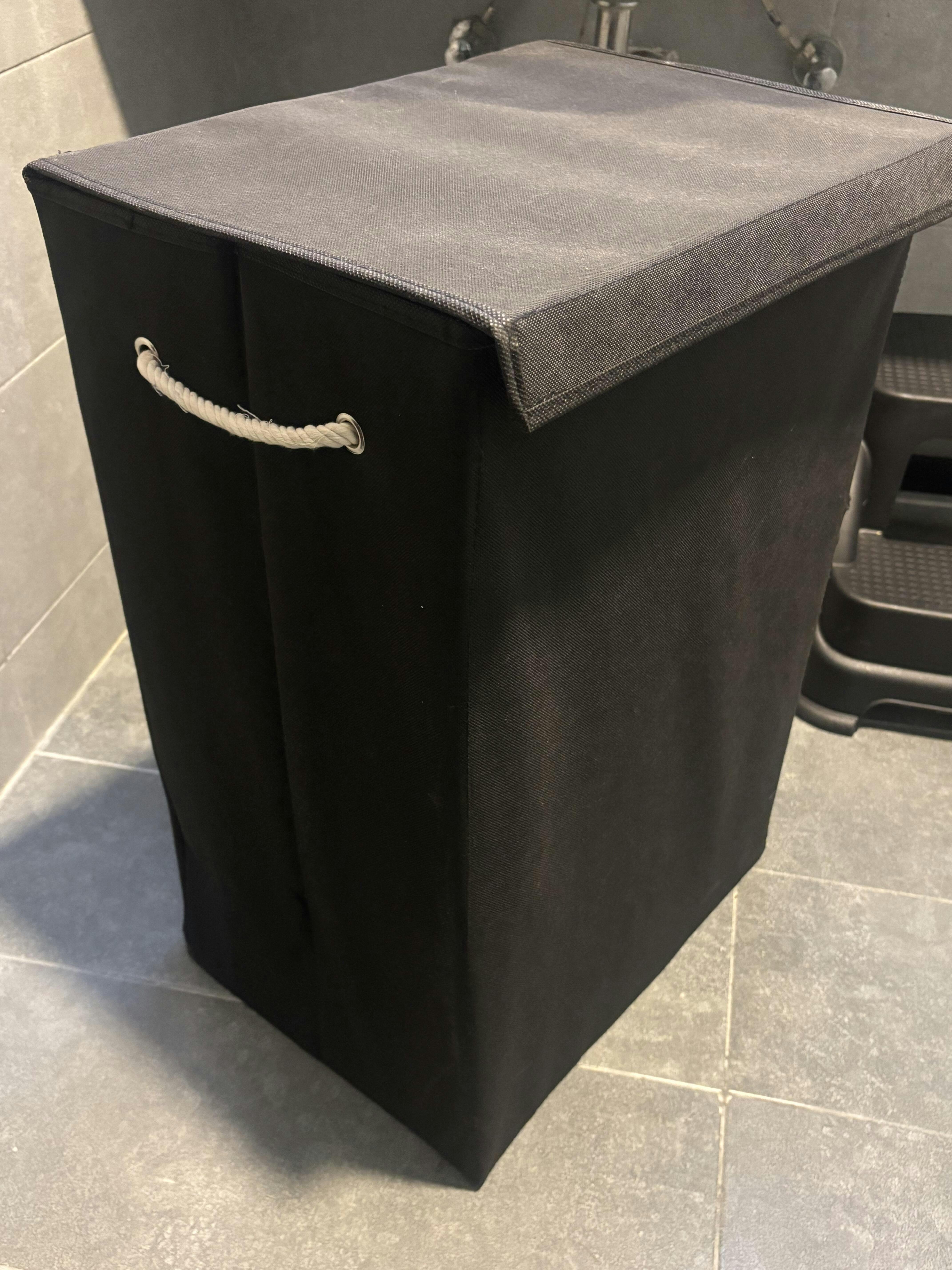 Really sturdy and functional laundry bin which is rather pretty and doesn't look out of place even in the corner of a bedroom. White rope handles give it an organic look. Bravo!!